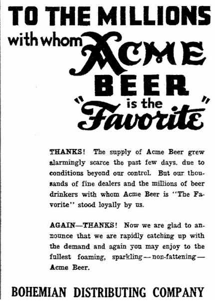 replaced by "Acme Brewing Assn." in San Francisco, and "Acme