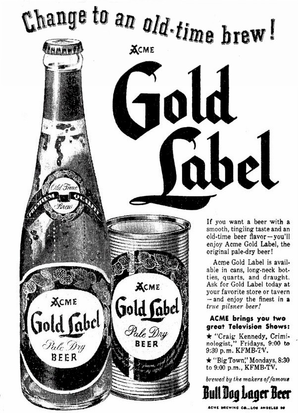 Then in Oct. 1952, the label was changed again with "Acme" reduced in size, emphasizing "Gold Label." But the label changes didn't help with sales. Fourteen months later the company was sold. |