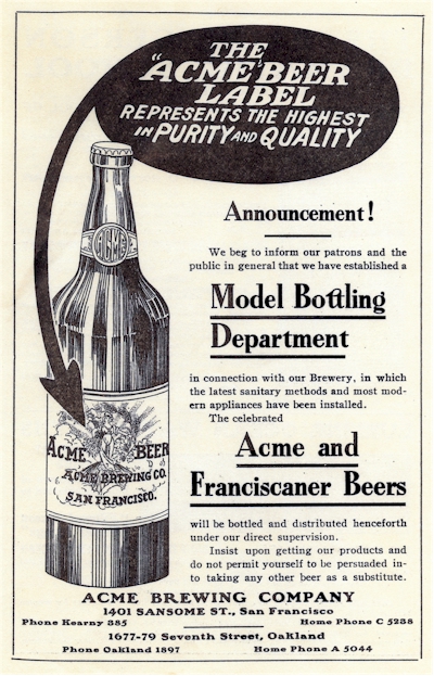 The Acme Brewery of San Francisco was established in 1907 by