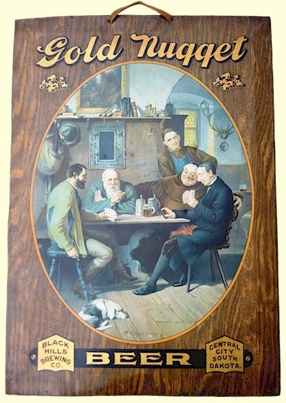 To locate a brewery in the Black Hills region of the Dakota Territory was a logical choice, especially in the late 1870s. Thanks to General George Custer's expedition to this northwestern section, gold was discovered at Deadwood Gulch in the Fall of '76. The resulting gold rush in the Spring of '77 had the Black Hills area booming. The larger towns of Deadwood, Lead City, and Central City, plus the smaller settlements of Gayville, Spearfish, Galena, and Sturgis were full of prospectors and miners, all thirsty for beer. There was no shortage of entrepreneurs seeking to quench this thirst, and brewers were quick to discover that easier riches were to be had in selling their liquid gold rather than in digging for the real thing. Deadwood The town of Deadwood was established in 1876, as a hastily constructed assemblage of tent, frame & canvas, and wooden structures. By 1877 these temporary shelters were being replaced with brick and frame buildings. There were a number merchants and outfitters selling to the miners, but there were a greater number of ventures devoted to other needs. The 1878 Business Directory for Deadwood listed 23 drinking establishments, including: "Miss Kitty" Leroy's Mint Saloon; Hisen & Welch's Snow Flake Saloon; Ludwig & Co.'s Senate Saloon; and Rosenkranz & Company's Central Saloon. There were also many regional breweries mentioned in newspaper accounts of the day. Most of these were small output operations meant only to supply the saloon belonging to the brewer - similar to brew pubs of today. In 1878 alone I found these enterprises: Lion Brewery; Star Brewery; Black Hills Brewery (owners of the Senate Saloon); Lead City Brewery; the Miners Brewery; the Parkhurst Brewery; and the Central City Brewery (owners of the Central Saloon). The wide open town offered a "hot" time, but it would heat up even more. In September of 1879 the "great fire" swept through the main business area leaving nothing standing in its wake. The town immediately commenced rebuilding, but this time with a decided preference for brick or stone over wooden structures. A couple of small breweries carried on into the early '80s, but the Black Hills Brewery was not among them. Its name sake would evolve from a venture started in nearby Central City by the owner of Deadwood's Central Saloon. This brewery would become the major producer of beer for the Black Hills region, and its Gold Nugget Beer would become the most popular. Central City In 1877 Henry Rosenkranz arrived in the boom town of Deadwood. He had heard of the riches to be gained in the Black Hills while working at a brewery in nearby Montana. With this expertise he set out to start his own brewery in Deadwood. However, with all the mining activity he didn't trust the local water supply. Instead he found a plentiful source from the Central City section of Deadwood Creek. This location was also nicely situated between Deadwood's revelry and Lead City's industry. He and partner Dan Warner built a modest wood frame structure and began brewing. The enterprise was an immediate success. Their teams of dray horses delivered kegs of their beer to the saloons, and beer halls around the mountainous region. Then just two years after start-up they had sudden surge in business. The Deadwood fire of '79 wiped out their much of competition, giving Rosenkranz and his partner an opportunity to supply many more beer halls than just their own Central Saloon. This unexpected influx of capital allowed Rosenkranz to buy out his partner in 1880. He then continued as a sole proprietor at the brewery, and added more saloons and beer halls to his portfolio. By 1882 he needed a larger plant to keep up with increased demand. So he purchased the nearby Phoenix Iron Works as a shell for the new brewery, adding an adjacent bottling works.