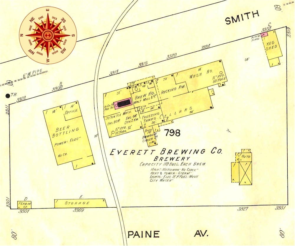 It wasn't until about 1899 that plans were laid to erect a large brewery in Everett - and in 1900 the Washington Brewery was supplying beer to the new community.