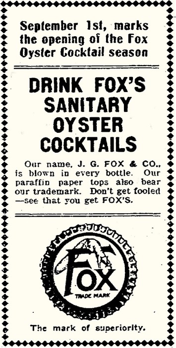 While the J.G. Fox Co. is best remembered for the soft drinks, oyster products,