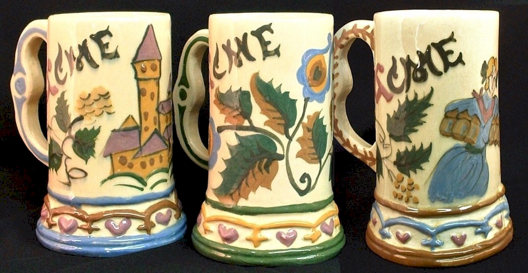on each of the approx. 6 in. tall ceramic mugs with "J.J. Fulop, Calif"