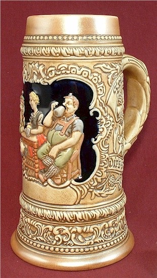 on a 5½" tall, ¼L stein made by Adolf Diesinger, ca.1903. Excellent condition,