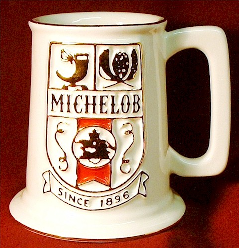 Bottle Label Stein. It depicts a labeled Budweiser bottle, c.1890.