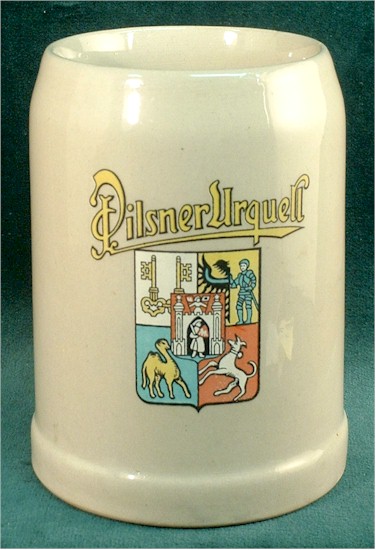 "Pilsner-Urquell" above the brewery's heraldic logo, on