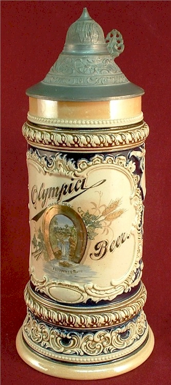Post-Prohibition Olympia beer glass. Go to: Glasses |
