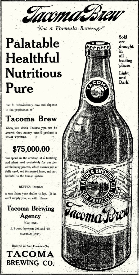 brewery was reorganized as the Tacoma Brewing Co., and in early 1920 they introduced a near-beer called Tacoma
