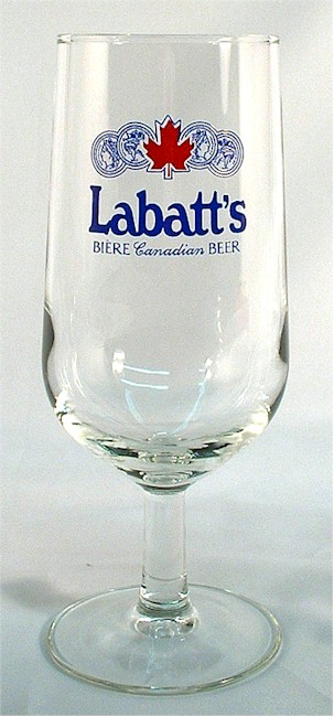 blue, below the Labatt's maple leaf logo, on a 6⅞" tall, footed