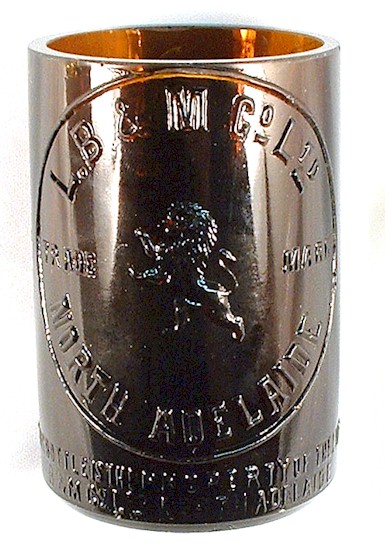embossed on a 4⅛" tall tumbler made from an antique beer bottle - hence