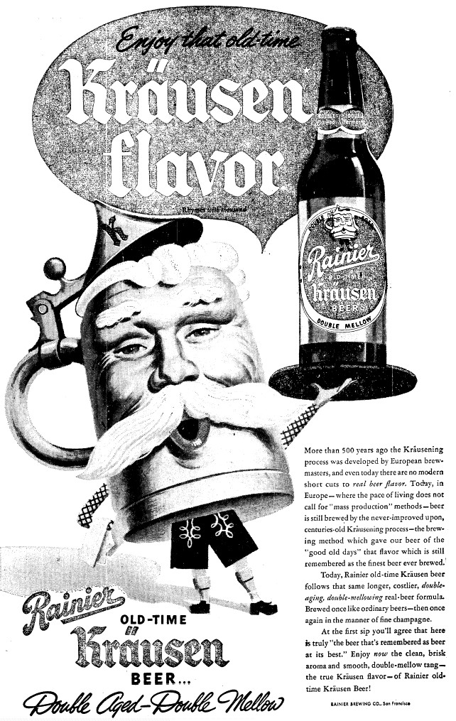 another product appeared - Rainier Old Time Kuäusen Beer - shown in the ad
