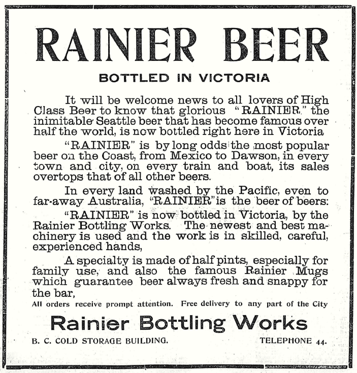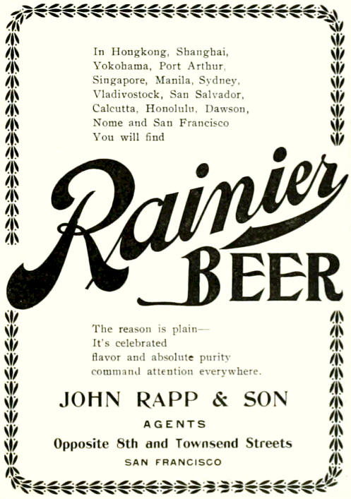 Rainier Beer. This was believed to be a claim that beer had been brewed on